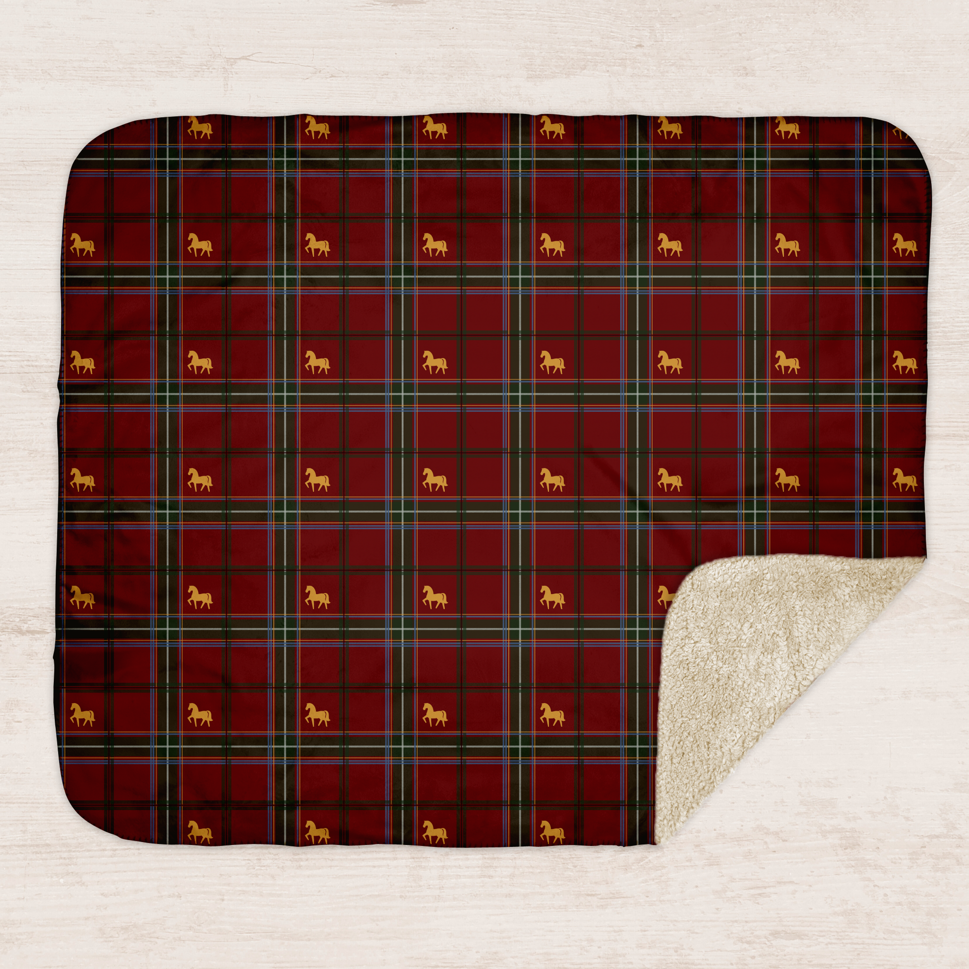 Christmas Tartan Sherpa Blanket with Horse Accent