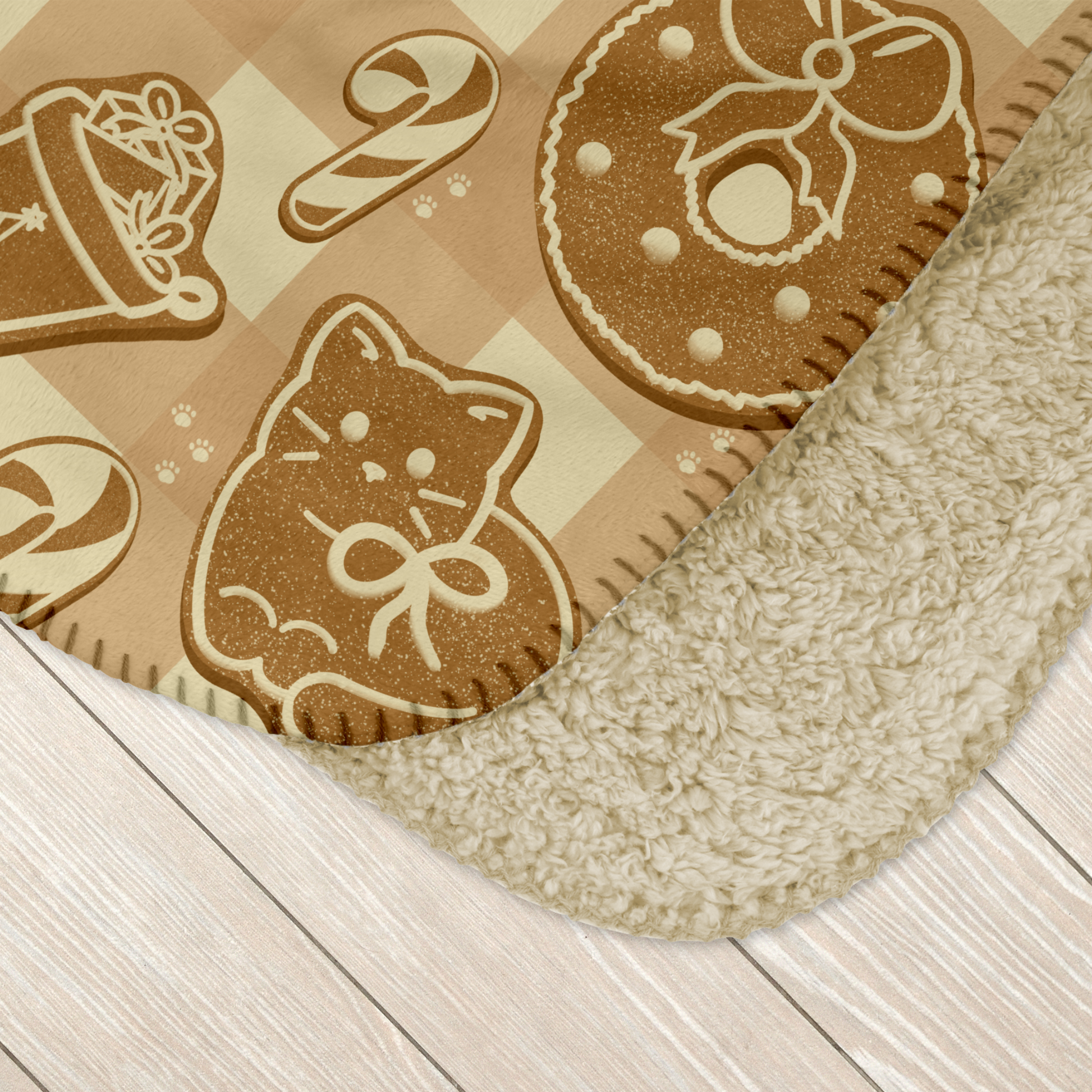 Cozy up with this adorable Sherpa Blanket featuring gingerbread cookies of cats with bows, wreaths, stockings, and candy canes on a beige gingham plaid. Perfect for cat lovers and those who enjoy a festive vibe during the holiday season. This blanket is ideal for snuggling on the couch or adding a touch of warmth to your bedroom decor. Product features - 100% Polyester for durability and quick drying - Vibrant colors with crisp printing techniques - Soft Sherpa fleece backside for added comfort - Decorative stitching and rounded corners for a stylish touch - Available in three sizes Care instructions - Machine wash separately: cold (max 30C or 90F), gentle cycle - Do not bleach - Tumble dry: low heat - Do not iron - Do not dryclean