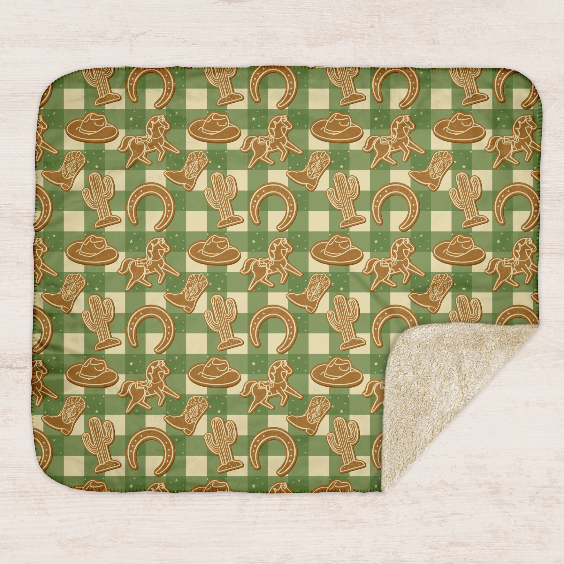 Green Western Gingerbread Sherpa Blanket