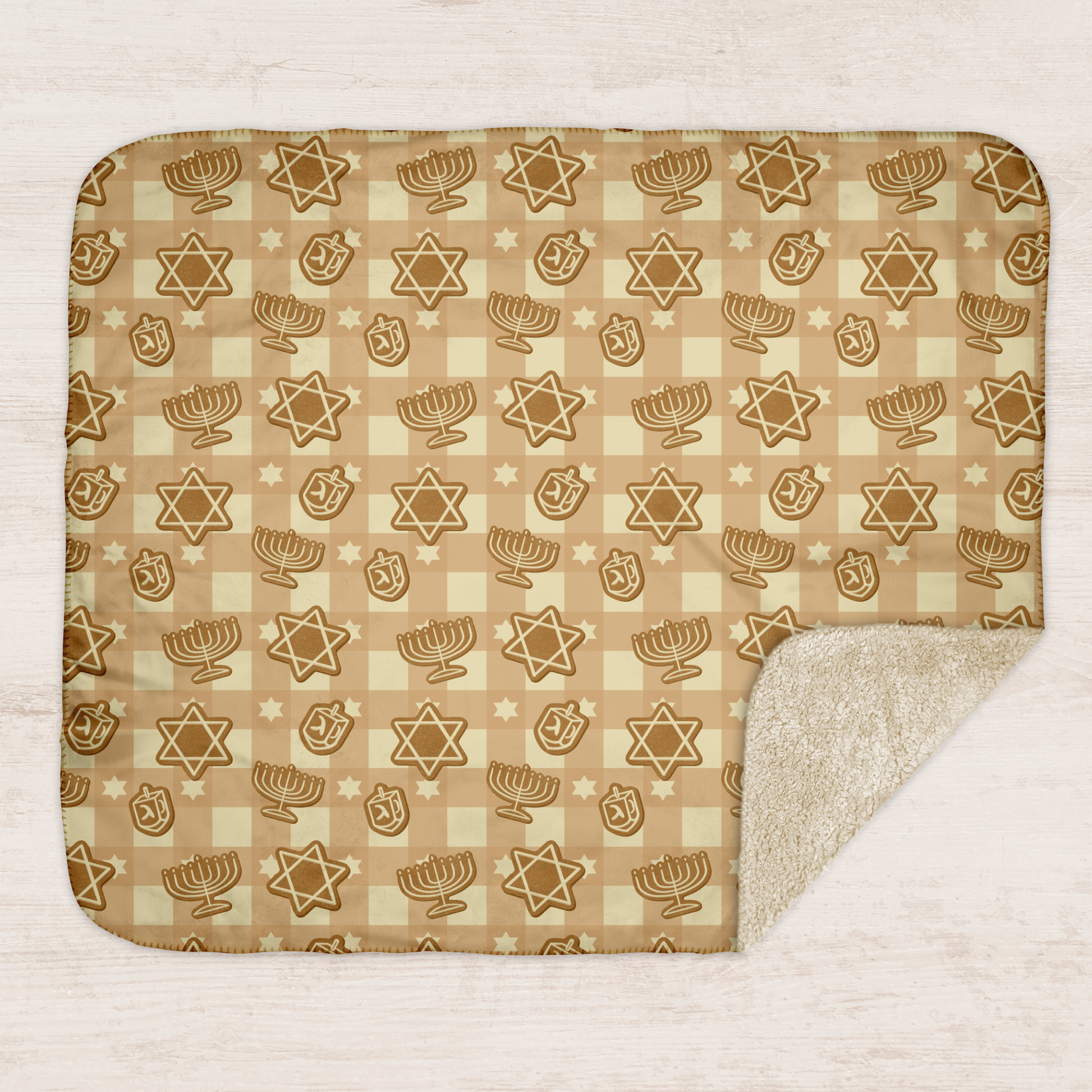 Hanukkah Gingerbread Beige Sherpa Blanket