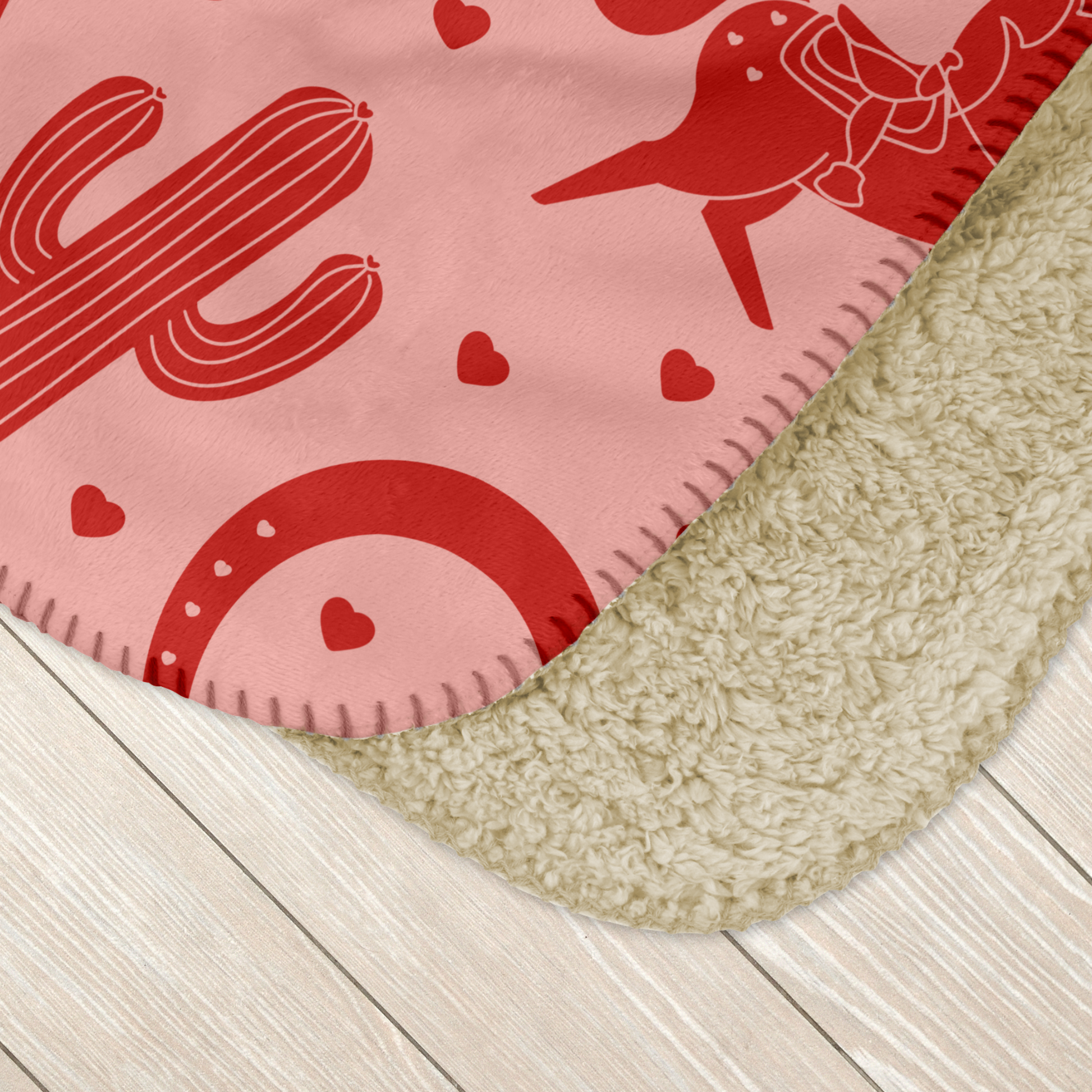 Western Valentine Sherpa Blanket | Pink & Red Cowboy Décor Throw | Horse Lover Gift | Rodeo Cowgirl Room Bedding | Cactus & Boots Valentine Gift