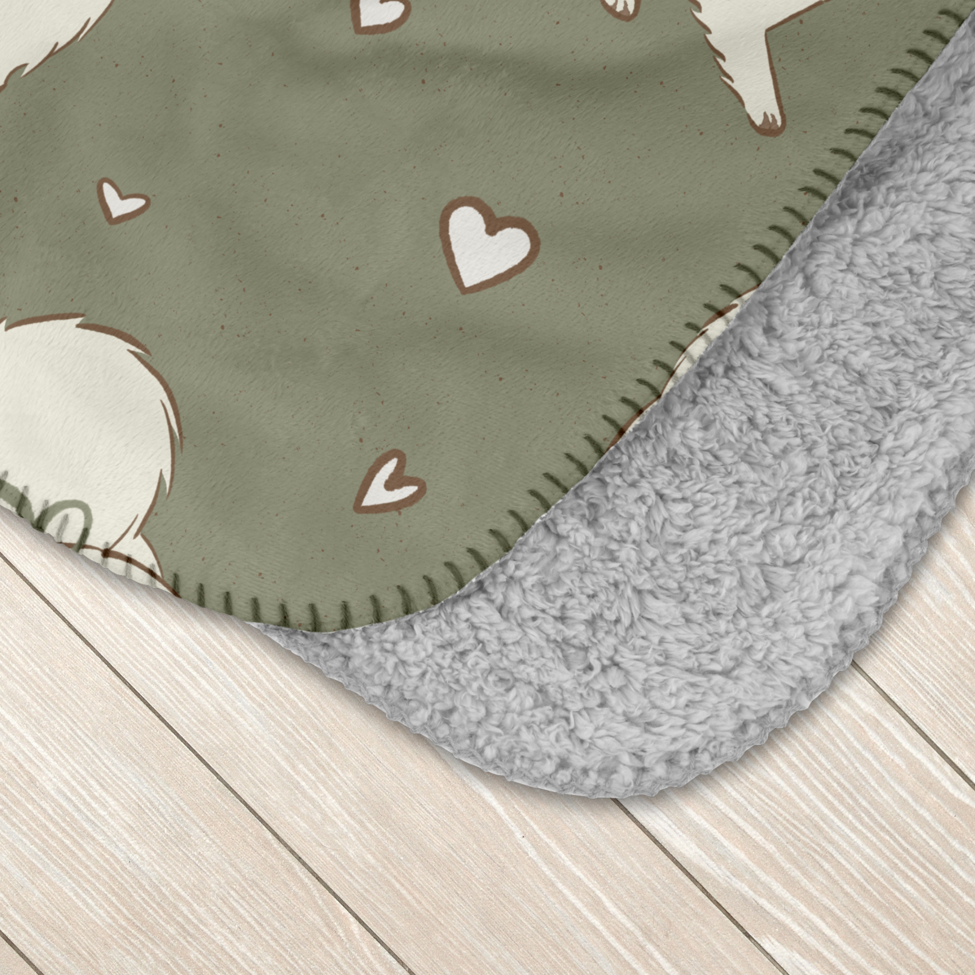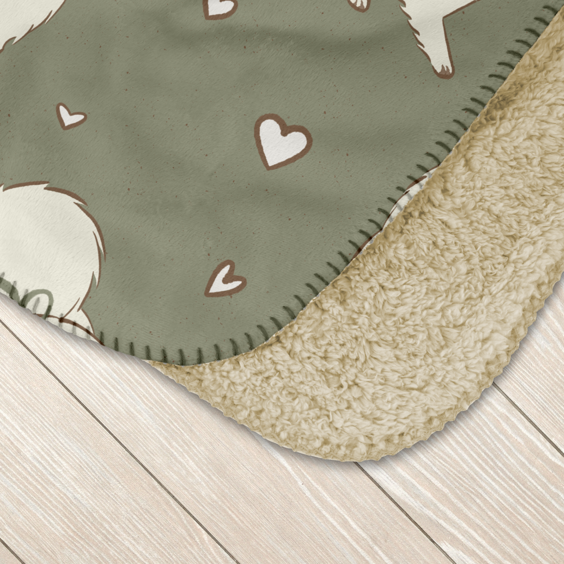 Samoyed Dog Sherpa Blanket | Green Tea Hearts Cozy Throw | Gift for Samoyed Owners & Dog Lovers | Cloud Dancer White Dog Breed Décor