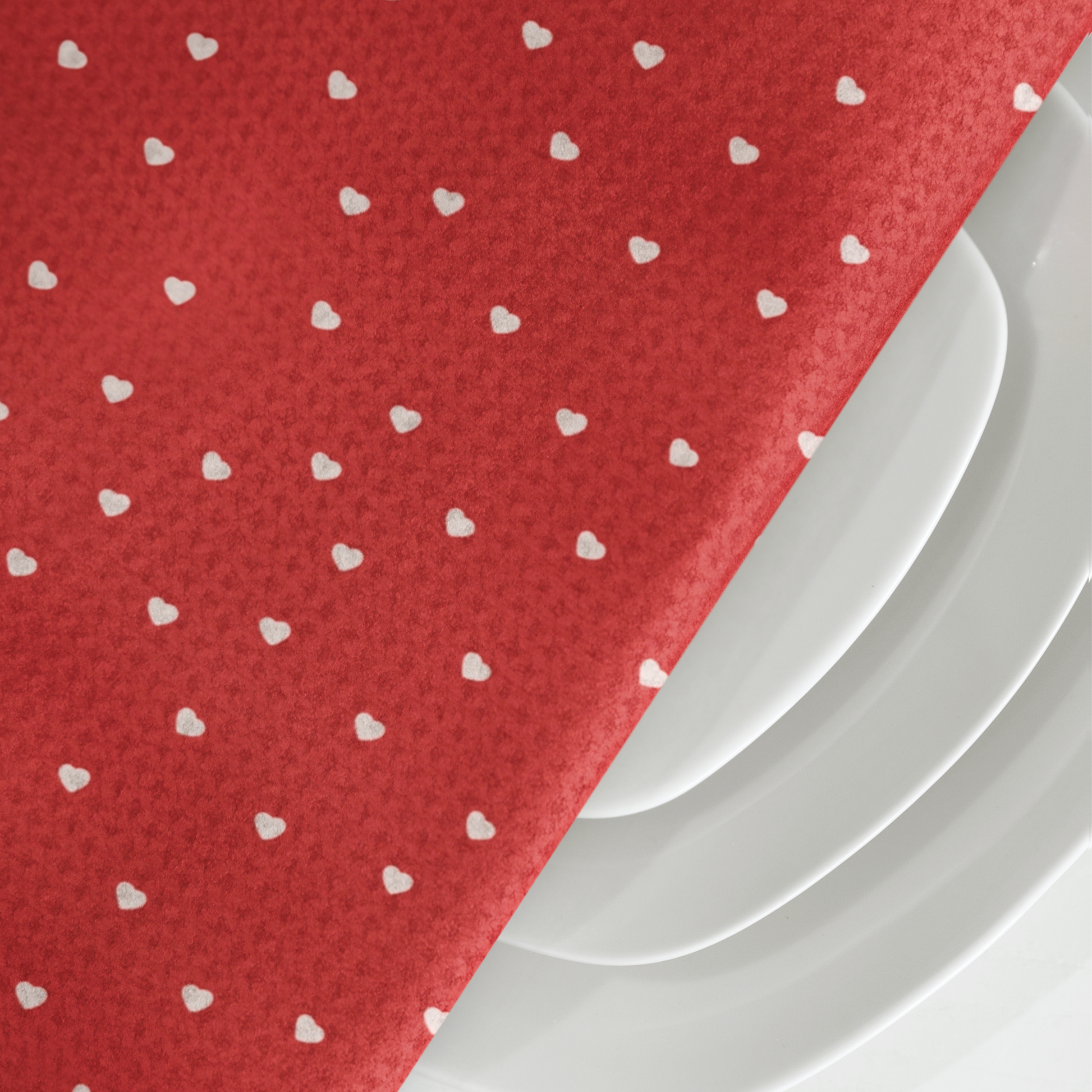 Add a warm, charming touch to your space with this red kitchen towel covered in delicate, petite hearts.